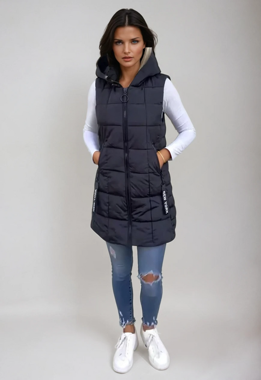 Damernas Långa Dunjacka med Huva och Dragkedjefickor