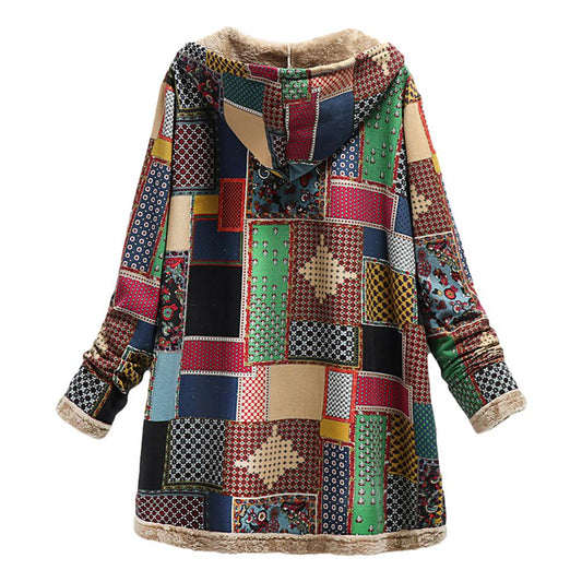 Spara 75%Lång vintagejacka med huva för kvinnor